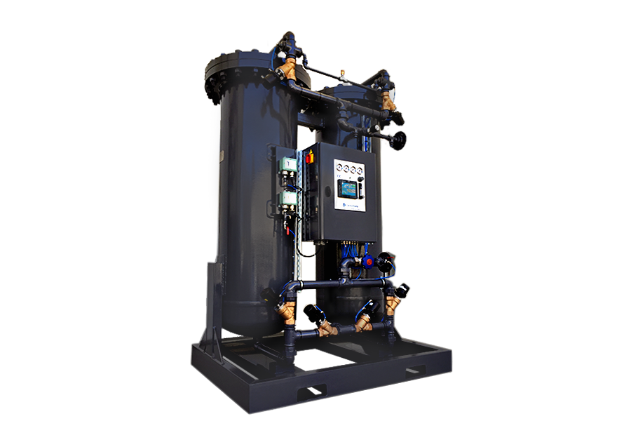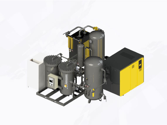 Dans les systèmes PSA, l’air comprimé doit être sec et libre d’impuretés avant de rentrer dans le générateur d’azote. ABSOGER a développé un système de haut rendement de prétraitement de l’air installé avec les générateurs d’azote de type PSA.