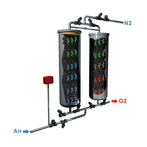 La technologie PSA consiste à séparer l’oxygène de l’air ambiant sous haute pression, en éliminant l’azote et autres gaz grâce à un tamis moléculaire de charbon actif.